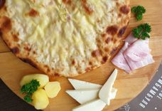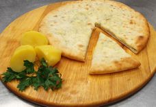 700 г • тонкое дрожжевое тесто, отварной картофель, традиционный осетинский сыр, грудинка копченая, сливочное масло