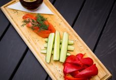 330/30 г • свежие томаты, огурцы, сладкий перец, сельдерей, маслины, укроп, лук зеленый, соус тартар