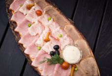 320/50 г • грудинка к/в, буженина домашняя, колбаски охотничьи, ветчина к/в, хрен