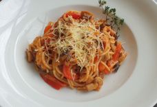 330 г • спагетти, баклажан, шампиньоны, сладкий перец, сельдерей, томатный соус, специи, пармезан